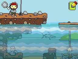 - Use a Black Hole to destory the rocks and the fish. Use a Scuba to swim down to the Starite.