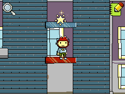 - Move the weight to the blue button. The starite will fall down and the green door will close under you. You can now safely dismount if you wish.