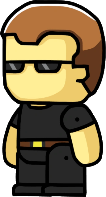 The female wears the same clothing and shades as her male counterpart. She has pixie haircut, probably to look more androgynous. She wears two ear piercings